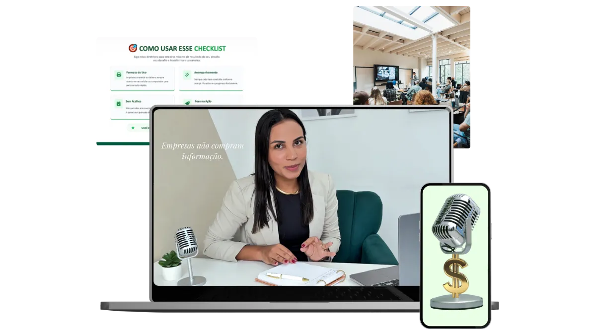 Monte o conteúdo da sua palestra, adaptando seu conhecimento técnico para uma linguagem clara, prática, que encanta e vende.